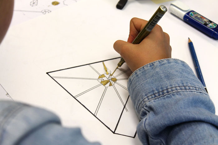 Construction libre d'une structure par le dessin et le volume.